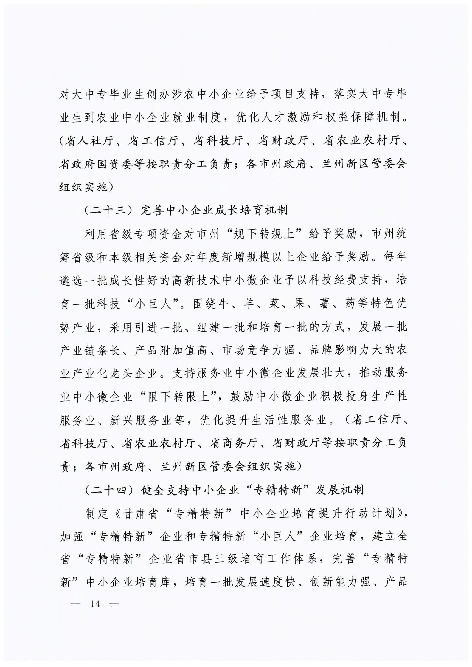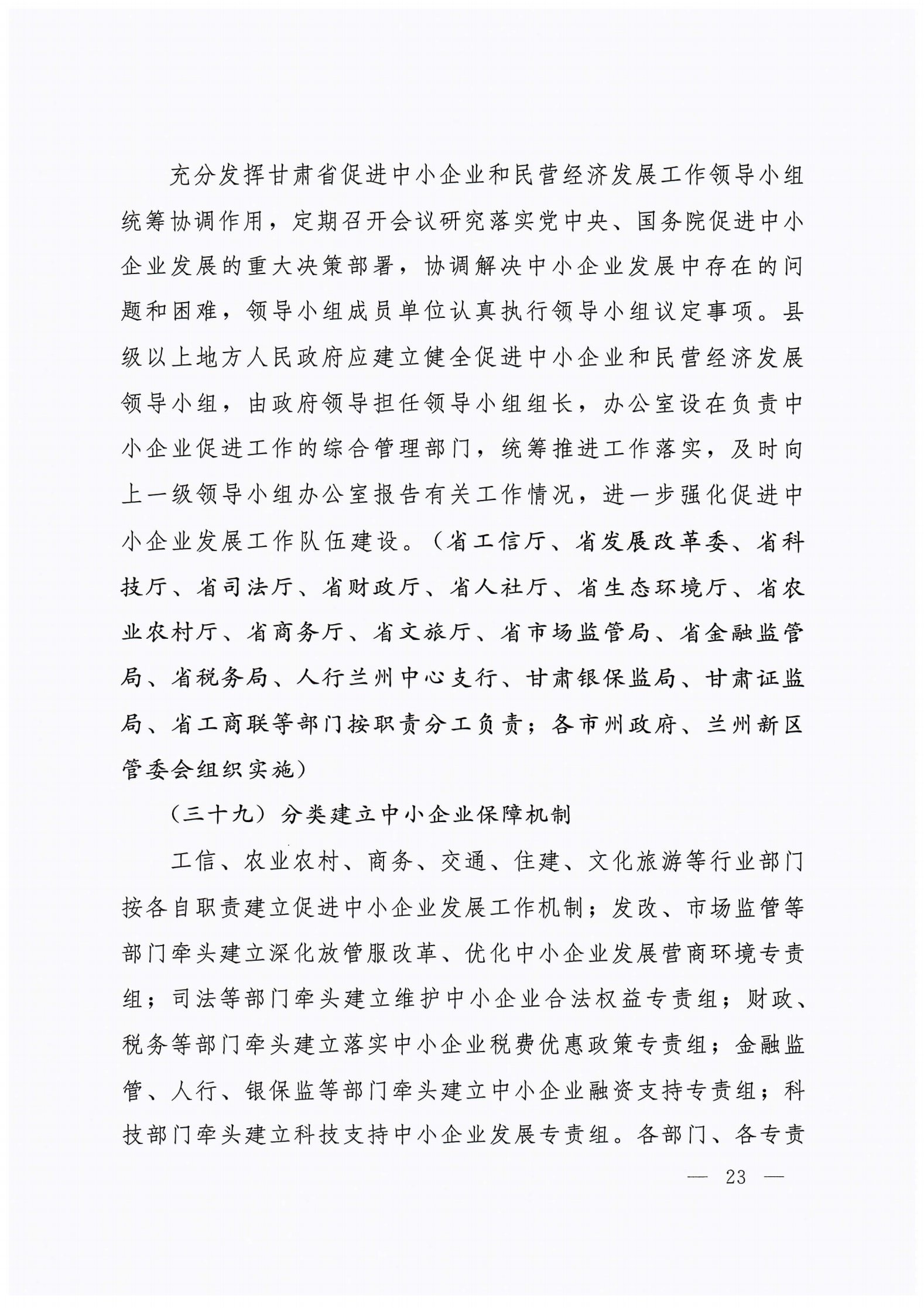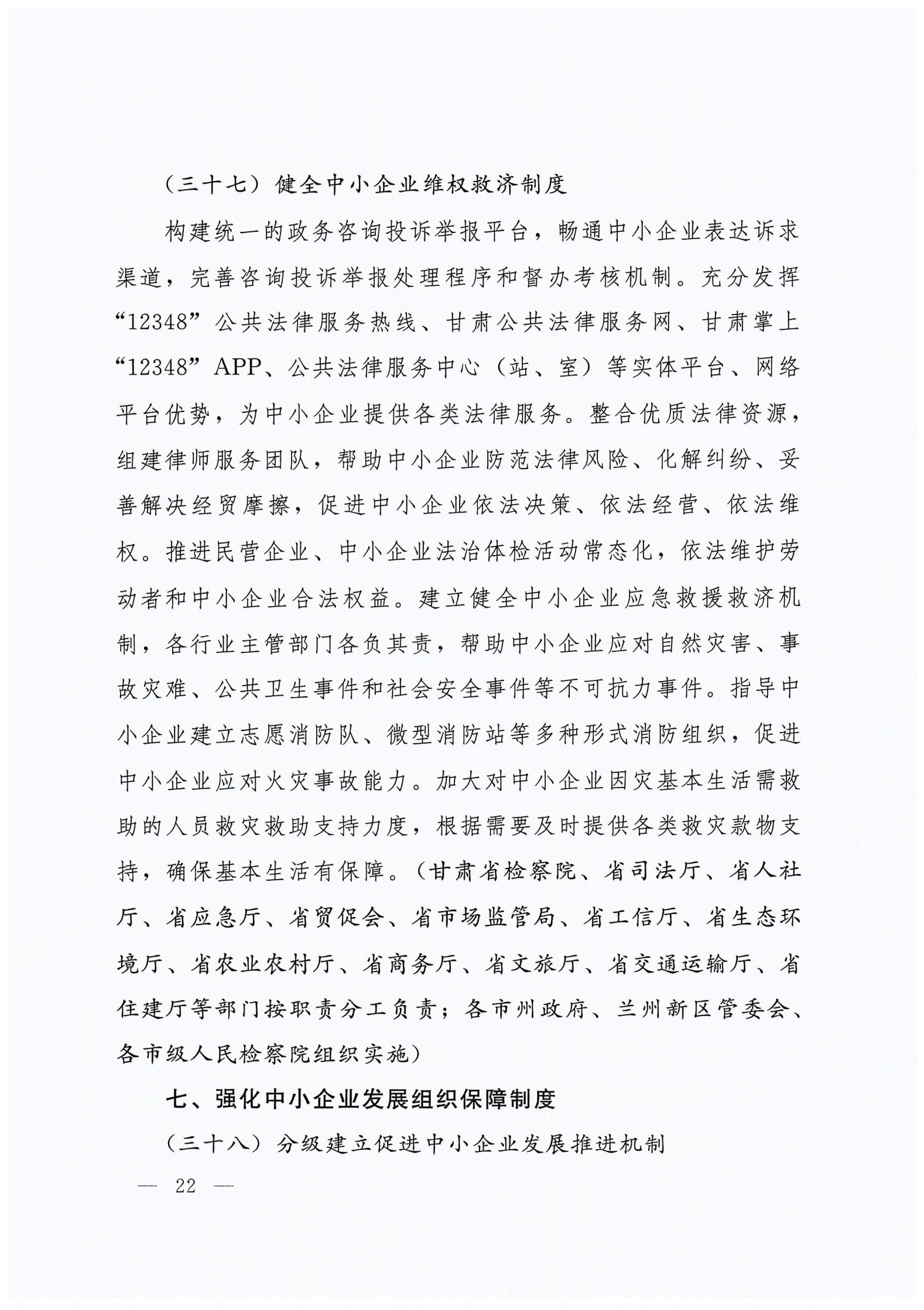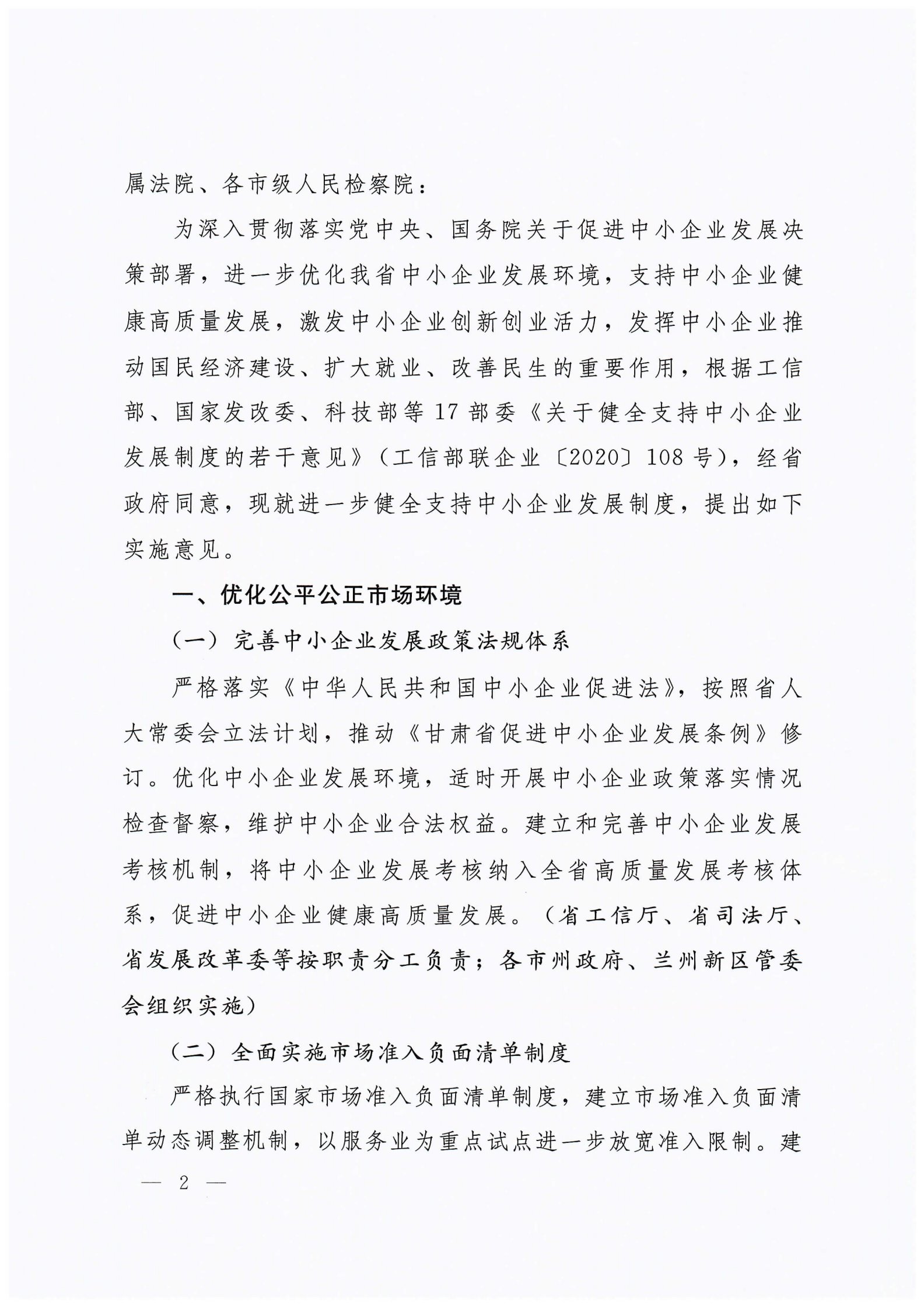 关于进一步健全支持中小企业发展制度的实施意见