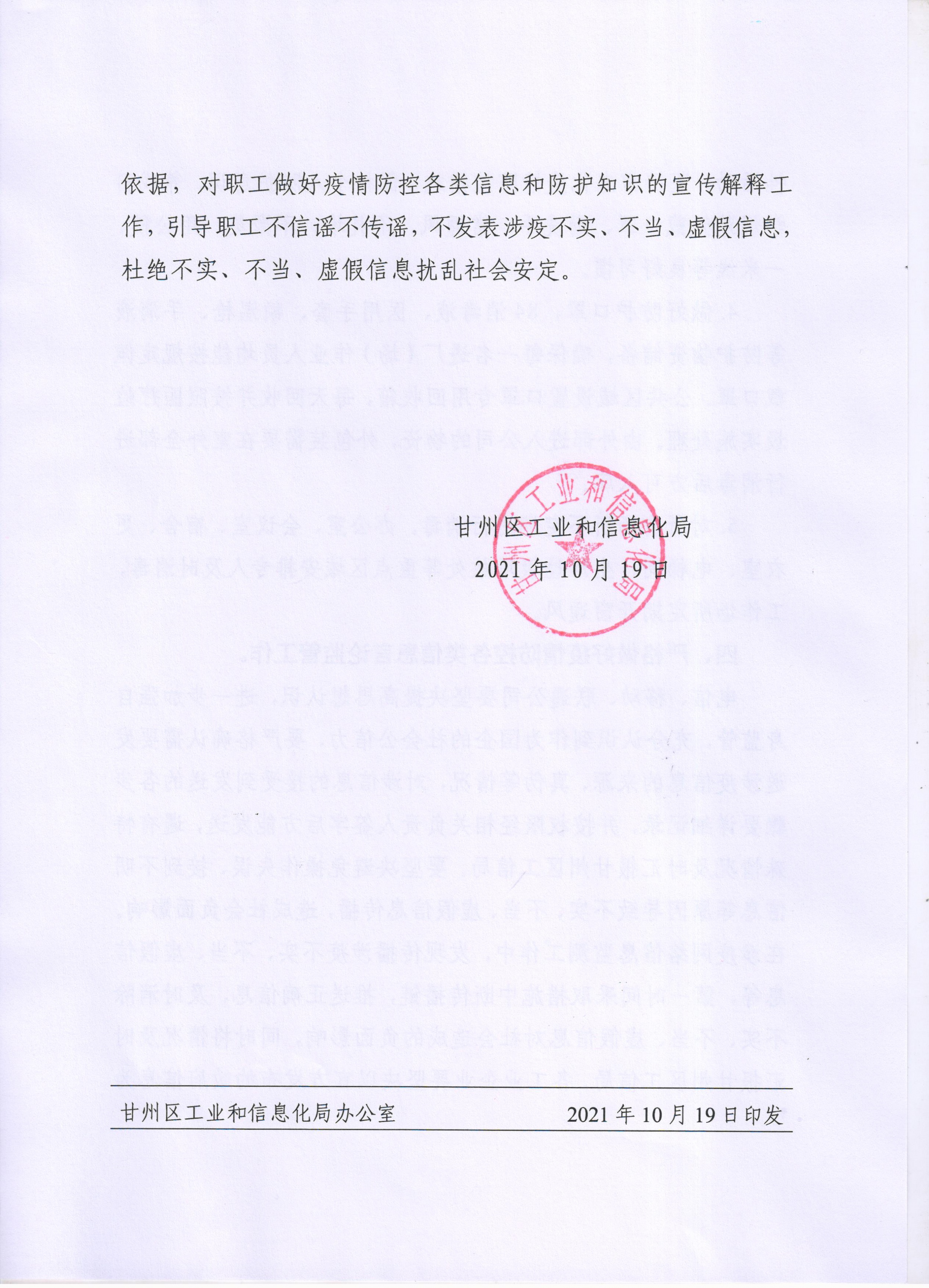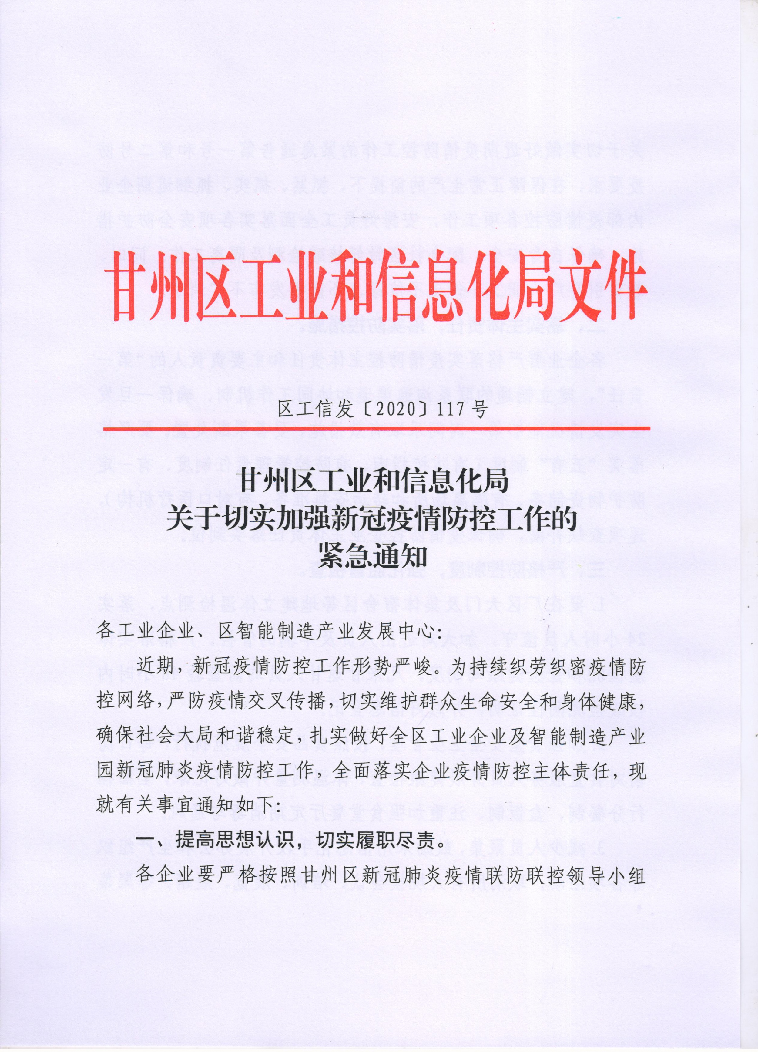 甘州区工业和信息化局《关于切实加强新冠疫情防控工作的紧急通知 》